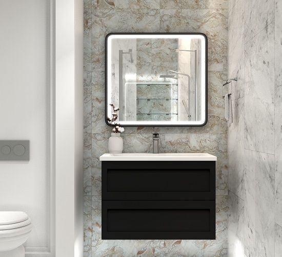 Подвесная тумба под раковину Art&Max Platino 90см чёрный матовый AM-Platino-900-2C-SO-NM-Cer купить