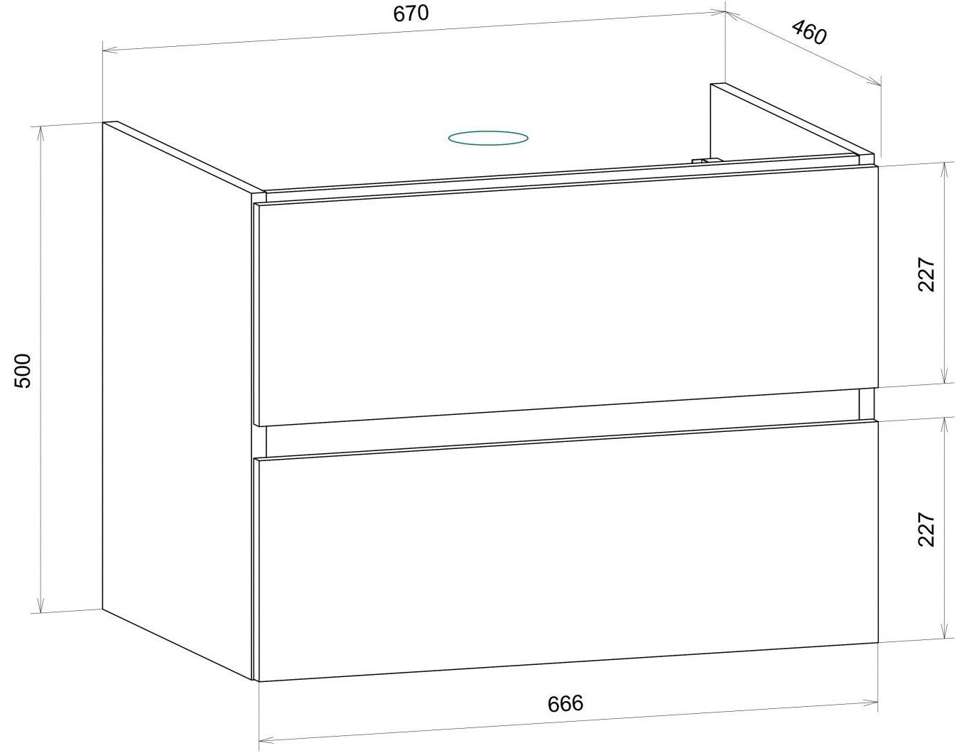 - Размер ящика: 666х227 мм