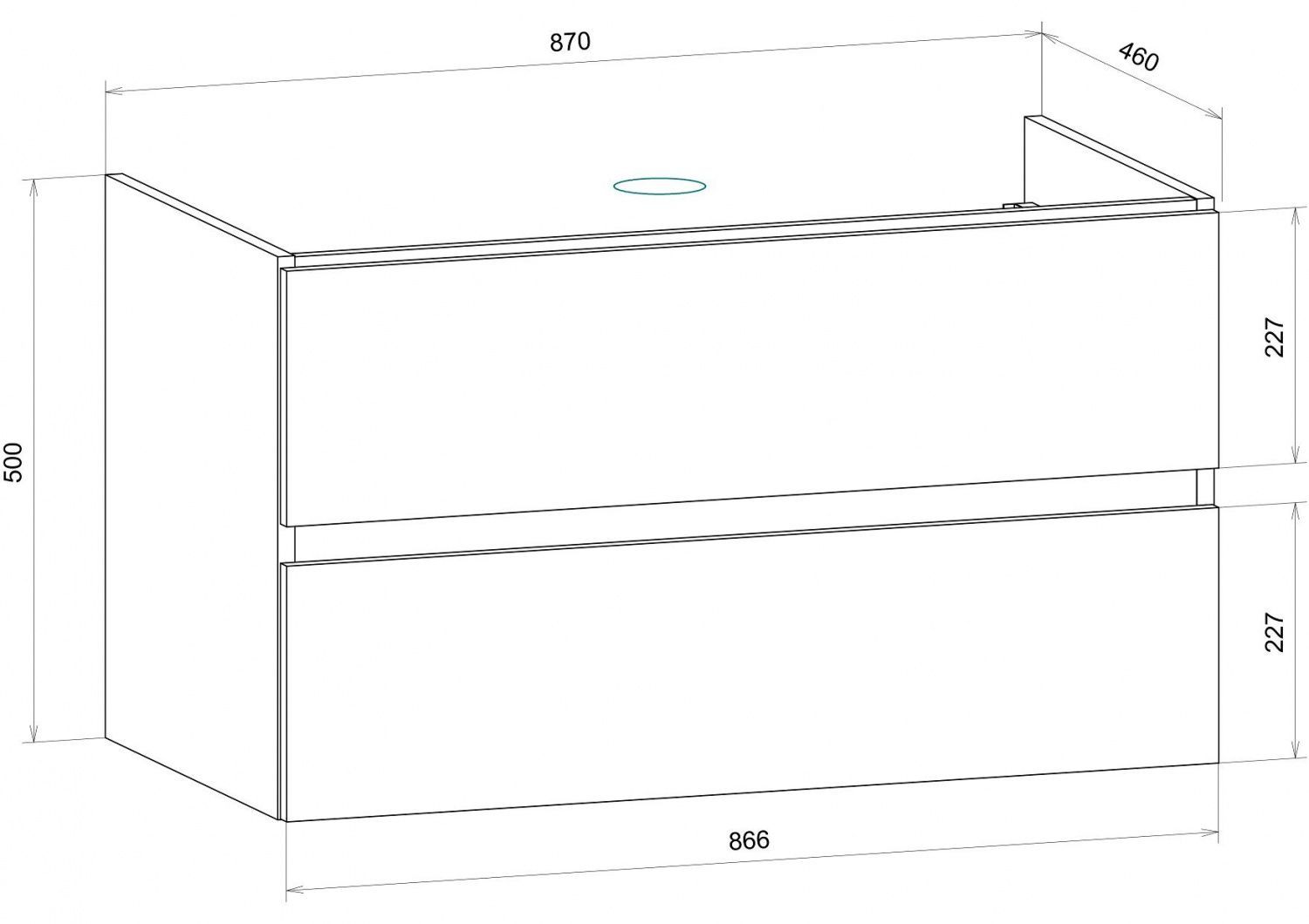 - Размер ящика: 866х227 мм