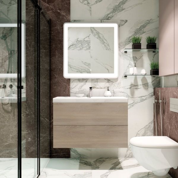Подвесная тумба под раковину Art&Max Verona Push 90см дуб сонома AM-Verona-Push-900-2C-SO-RS-TS купить