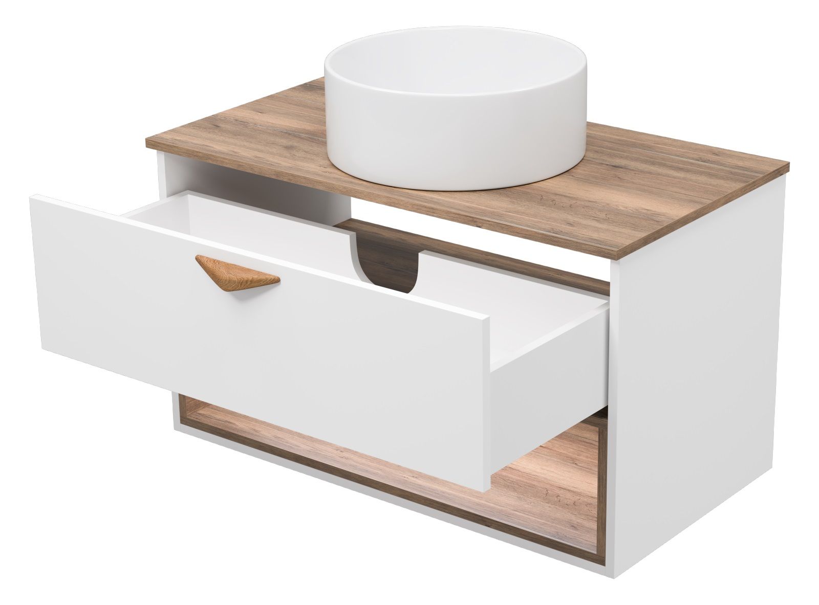 Подвесная тумба под раковину Brevita Bergen BER-07090-19-01-1Я с подсветкой 90см дуб Галифакс олово/белый купить