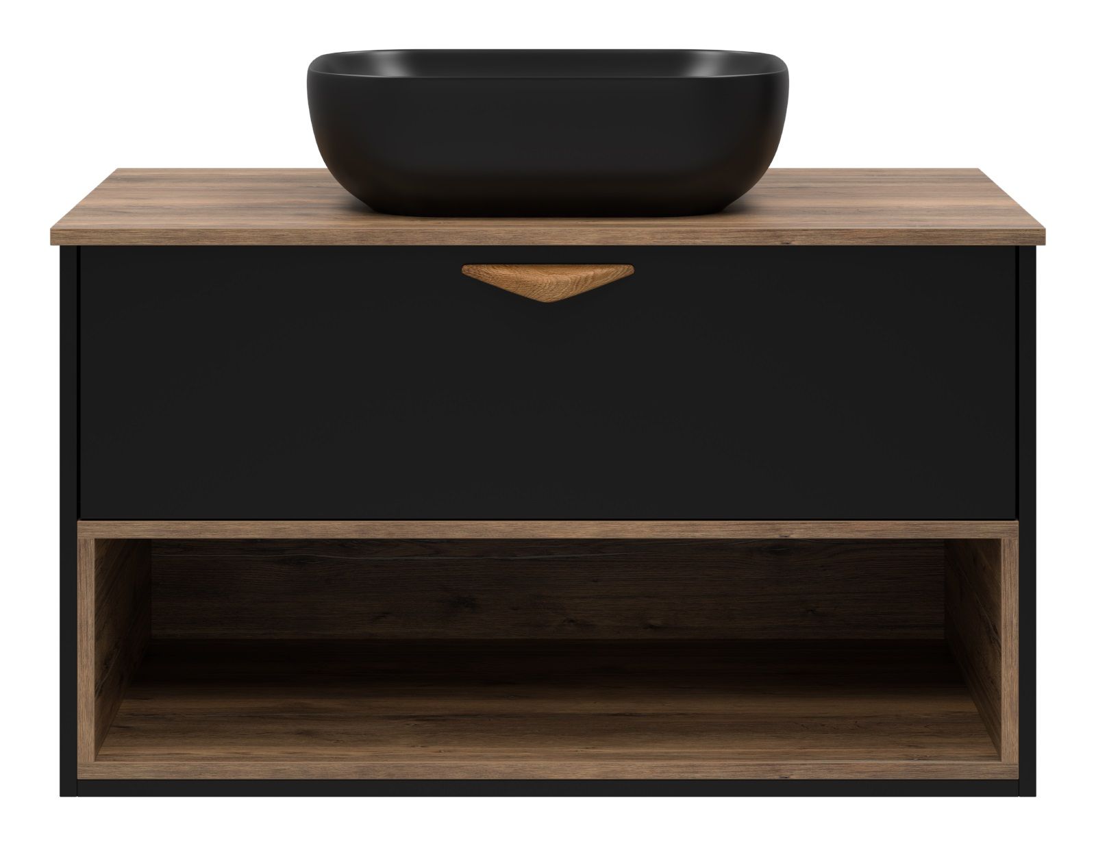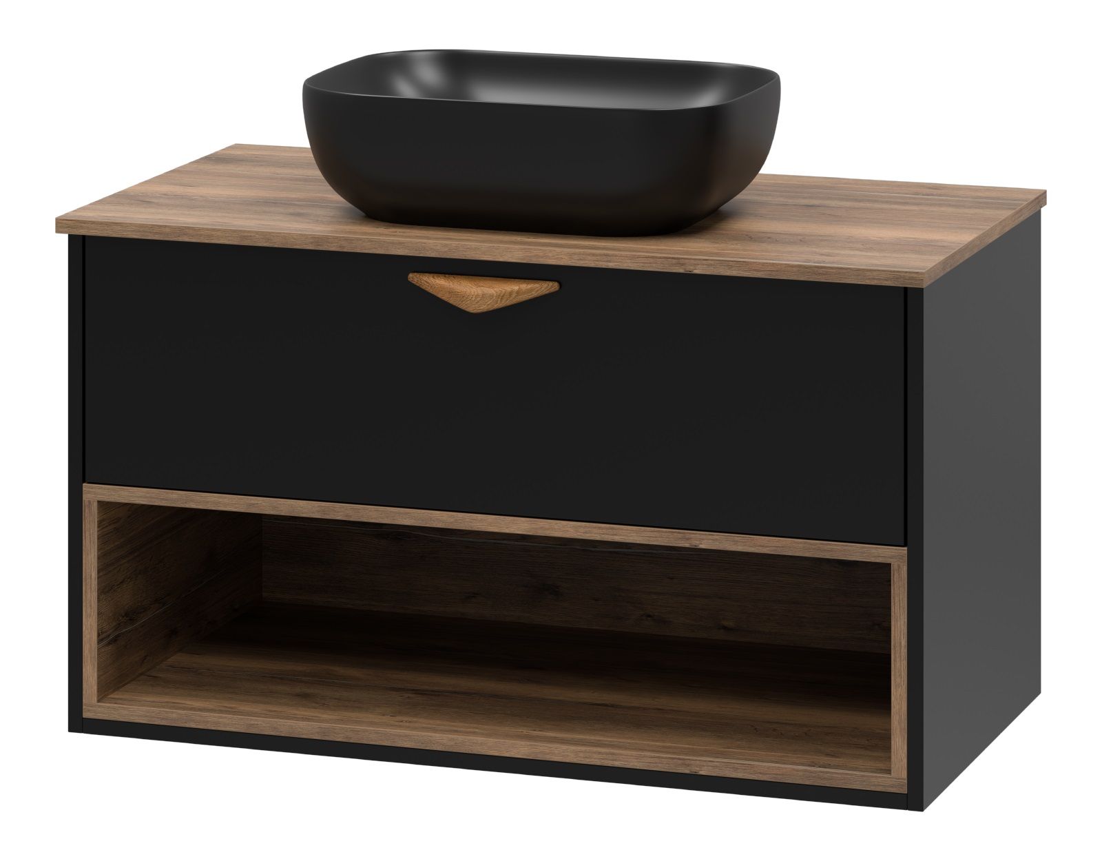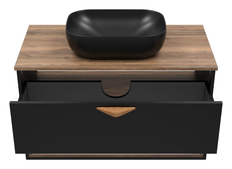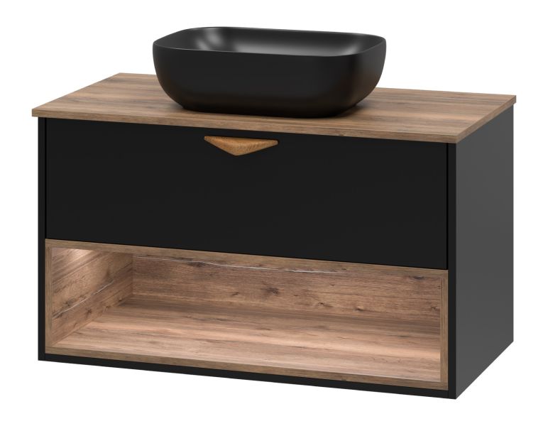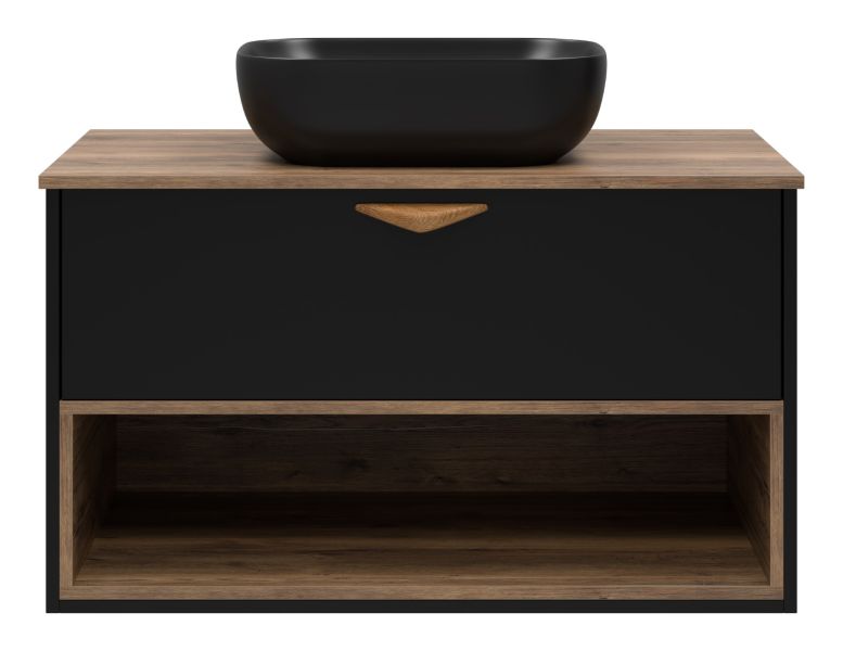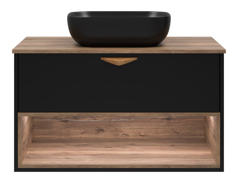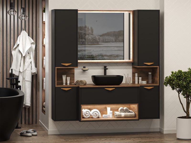 Подвесная тумба под раковину Brevita Bergen BER-07090-19-02-1Я с подсветкой 90см дуб Галифакс олово/чёрный купить