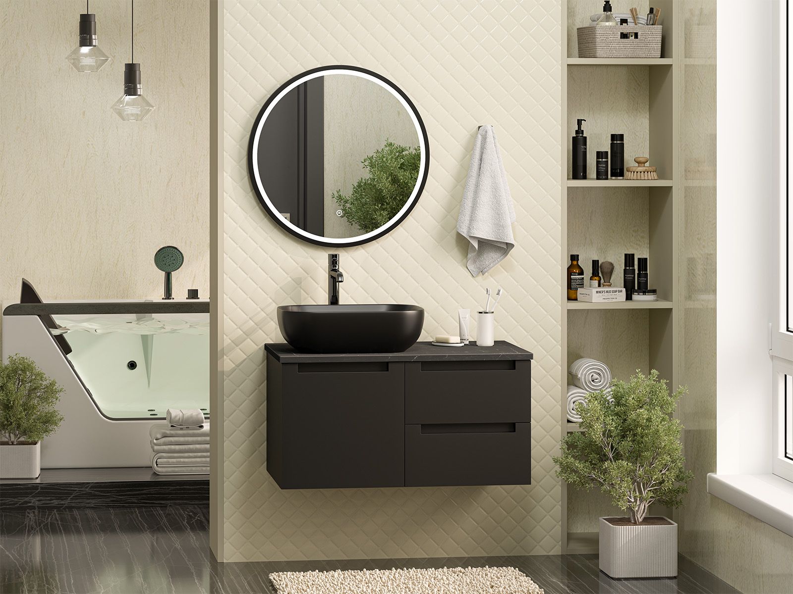 Подвесная тумба в ванную комнату – это не просто элемент мебели, а подлинный акцент в интерьере, который сочетает в себе функциональность и стиль. Она придаёт помещению лёгкость и воздушность, освобождая пространство на полу и создавая иллюзию большего объёма.Функциональные особенности таких тумб варьируются от наличия выдвижных ящиков до встроенных систем хранения, которые помогают организовать пространство ванной комнаты. Важным аспектом является также возможность выбора различных цветовых решений и отделок, что позволяет гармонично вписать тумбу в любой интерьер – от классического до ультрасовременного.С помощью подвесной тумбы ванная комната становится не только более удобной, но и эстетически привлекательной, создавая атмосферу уюта и роскоши.