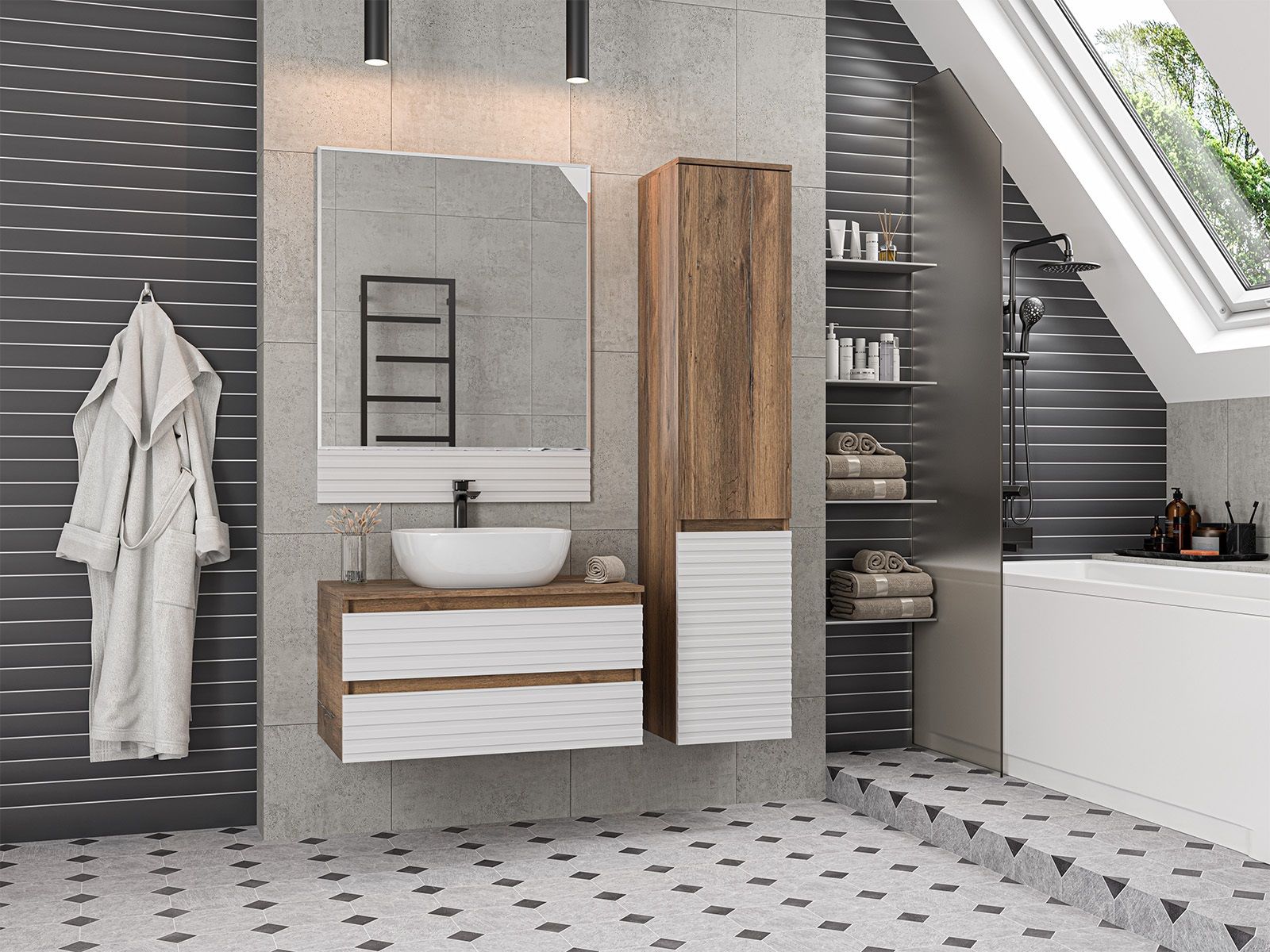 Подвесная тумба под раковину Brevita Dakota DAK-09080-19/01-2Я 80см дуб Галифакс олово/белый купить