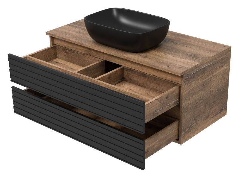Подвесная тумба под раковину Brevita Dakota DAK-09100-19/02-2Я 100см дуб Галифакс олово/чёрный купить