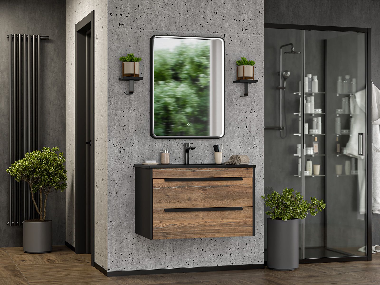 Подвесная тумба под раковину Brevita Monsour MON-09080-0102Я 80см дуб Галифакс олово/чёрный кварц купить