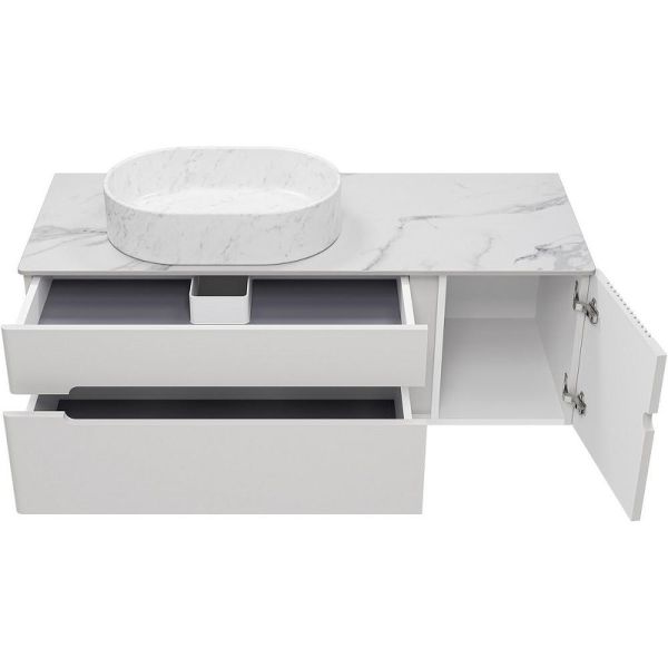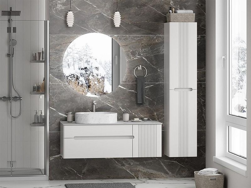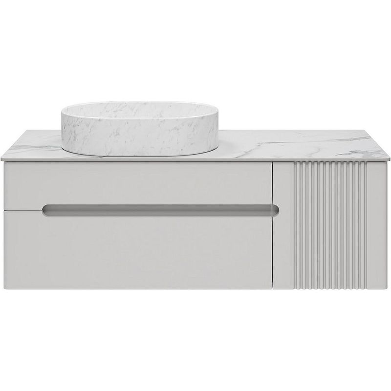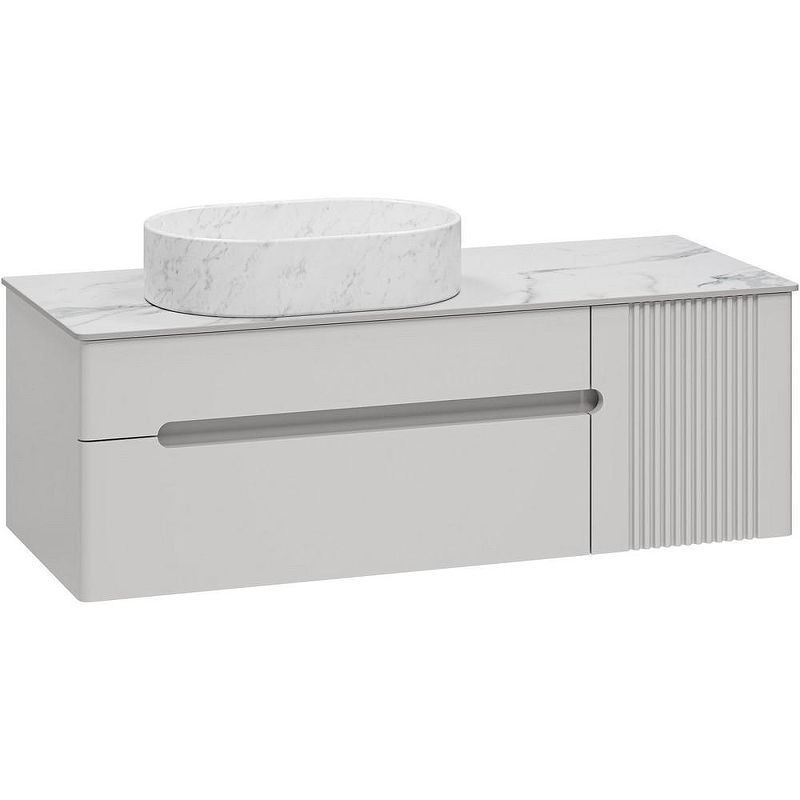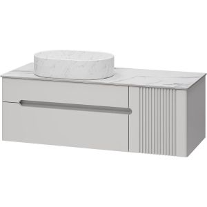 Тумба с раковиной Brevita Pallisandro 120 УТ000025404 подвесная. Pallisandro - когда эстетика встречается с функциональностью. Коллекция создана для ценителей утончённого дизайна и продуманных деталей. Здесь всё подчинено принципу элегантного минимализма: лаконичные фасады в эмали, изысканная фрезеровка на дверце и отсутствие внешней фурнитуры для чистоты линий. Главный акцент коллекции — столешницы из керамогранита, устойчивые к влаге, механическим повреждениям и химическим веществам. Накладные раковины гармонично завершают современный образ. Внутреннее пространство продумано до мелочей: ящики оснащены доводчиками скрытого монтажа, что обеспечивает плавное закрывание, а противоскользящие коврики внутри ящиков позволяют хранить вещи в идеальном порядке. Благодаря подвесному монтажу, мебель смотрится легко, а уборка становится удобнее. Pallisandro - это премиальный комфорт, который чувствуешь в каждой детали. Характеристики: Тумба под раковину: