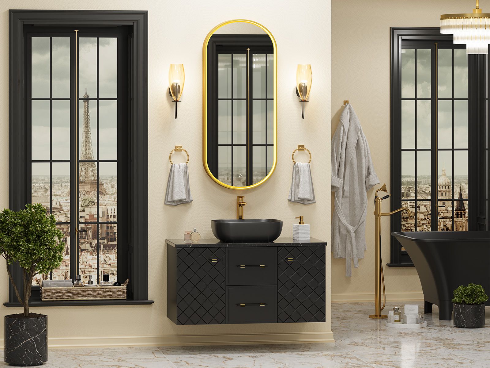 Подвесная тумба под раковину Brevita Shanel SHA-09100-02-01-2Я 100см чёрный купить