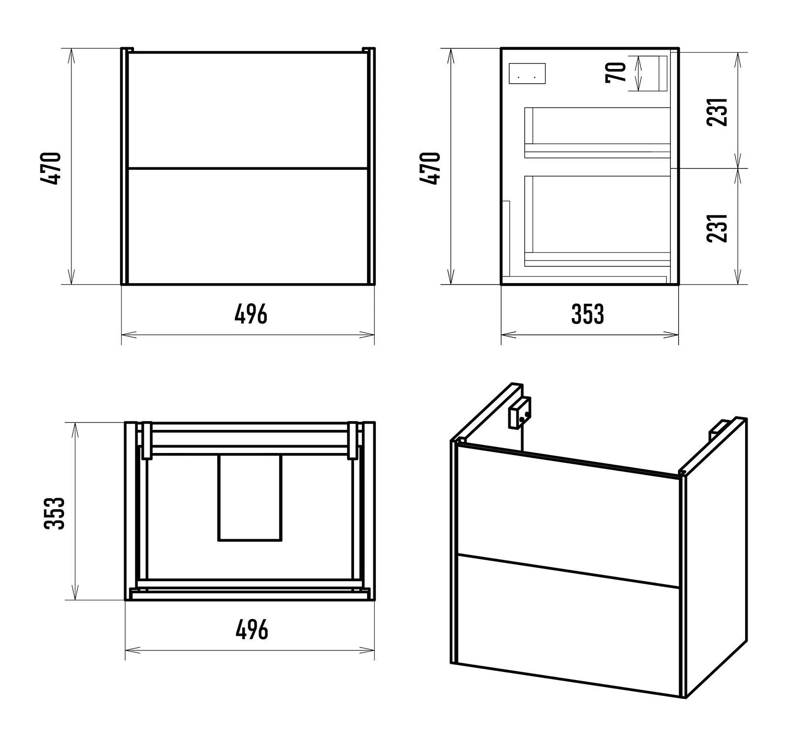 Размер мебели, мм (ш/г/в): 496x353x470