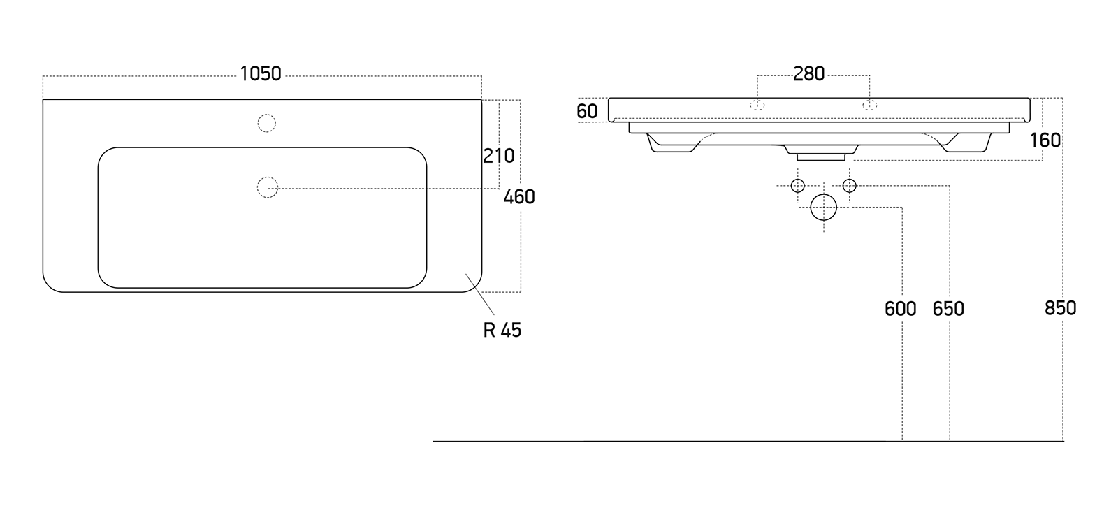 Размер раковины, мм (ш/г/в): 1050x460x160