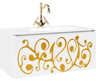 Подвесная тумба под раковину Clarberg Elegance 100 EL0110GL, с двойным выдвижным ящиком, с ручкой-выемкой. Эргономичность и гармония. Изысканный и нежный тисненый узор создает романтическое настроение.Технические данные:Цвет: белый матовый с золотым узором.