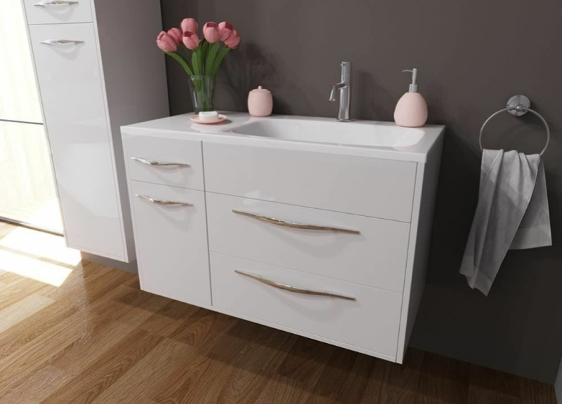 Коллекция Barcelona выполнена в стиле модерн. Плавные линии и формы подчеркивают элегантность комплекта, а разнообразие комплектации позволяет использовать мебель в качестве маркера вашего собственного стиля. За счет раковины с крылом коллекция Barcelona более вместительная и удобная. В подвесной тумбе располагаются 3 ящика и дополнительное пространство с распашной дверцей. Два ящика предполагают размещение более крупных вещей, а один ящик для мелких предметов. В секции с распашной дверцей можно разместить бытовую химиюТумба белого цвета по умолчанию. Возможна покраска по палитре RAL.