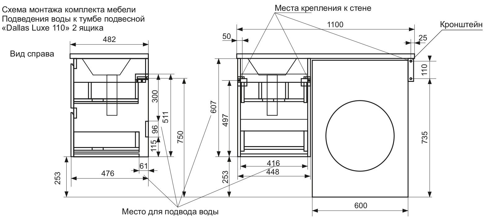 Подвесная тумба под раковину Эстет Dallas Luxe ФР-00002016 Л/П 110см два ящика белый купить