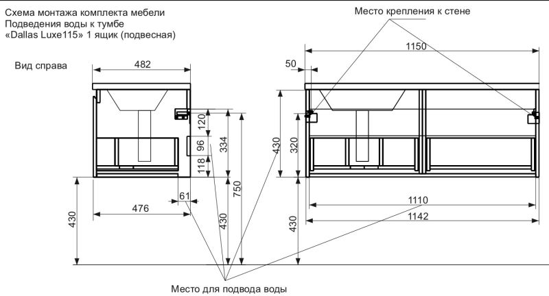 Подвесная тумба под раковину Эстет Dallas Luxe ФР-00002305 Л/П 115см один ящик белый купить