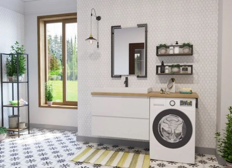 Коллекция Malibu Luxe выполнена в эко-стиле из экологичных материалов, что дает возможность быть ближе к природе. Подвесная тумба с 2 ящиками выглядит естественно и натурально. Её украшает большая столешница из массива дерева, устойчивая к влаге. Поверхность столешницы гладкая и прочная. Накладная раковина выполнена из литьевого мрамора. Стиральная машина устанавливается под столешницей, за счет чего экономит место. Malibu Luxe придаст не только уютную атмосферу, но и позволит грамотно распределить пространство в ванной комнате. Мебель выполнена из влагостойкого ЛДСП и качественного MDF с использованием эмали RENNER (Италия). Ящики снабжены системой плавного закрывания. Для мебели используется фурнитура Samet (Турция).