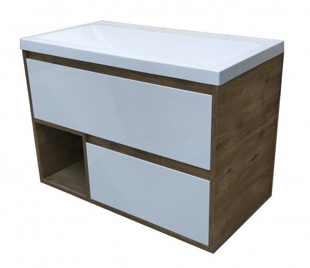 Подвесная тумба под раковину Эстет Monaco Wood ФР-00010672 90см два ящика белый/дуб рустикальный купить