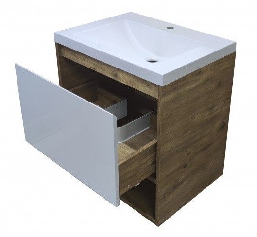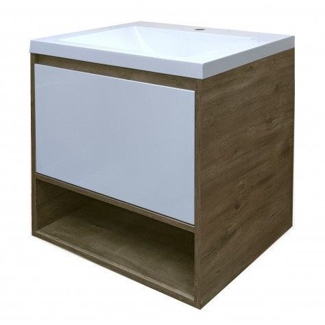 Подвесная тумба под раковину Эстет Monaco Wood ФР-00010680 60см один ящик белый/дуб рустикальный купить