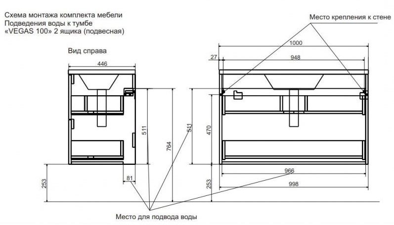 Подвесная тумба под раковину Эстет Vegas ФР-00003485 100см два ящика белый купить