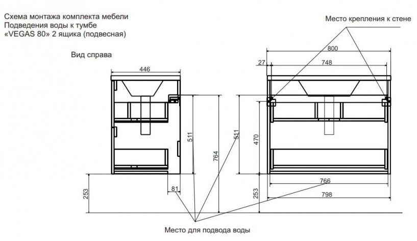 Подвесная тумба под раковину Эстет Vegas ФР-00003488 80см два ящика белый купить
