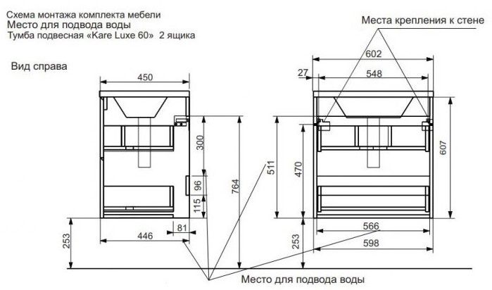 Подвесная тумба под раковину Kare Luxe ФР-00007075 60см два ящика белый купить