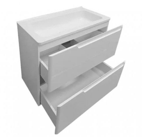 Коллекция Kare Luxe выполнена в современном стиле и разработана для тех, кто устал от сложных форм. Прямые линии и отсутствие лишних деталей отличают этот стиль от других. Kare приятно удивит Вас гармонией элементов дизайна и порадует своей функциональностью. Подвесная тумба с 1 ящиком укомплектована раковиной из литьевого мрамора с закруглёнными краями, тонким бортиком и изящным вкладышем. Ручки, переходящие в тумбу, подчеркнут современный стиль. Вместительный и функциональный ящик позволит грамотно разместить мыльные принадлежности.