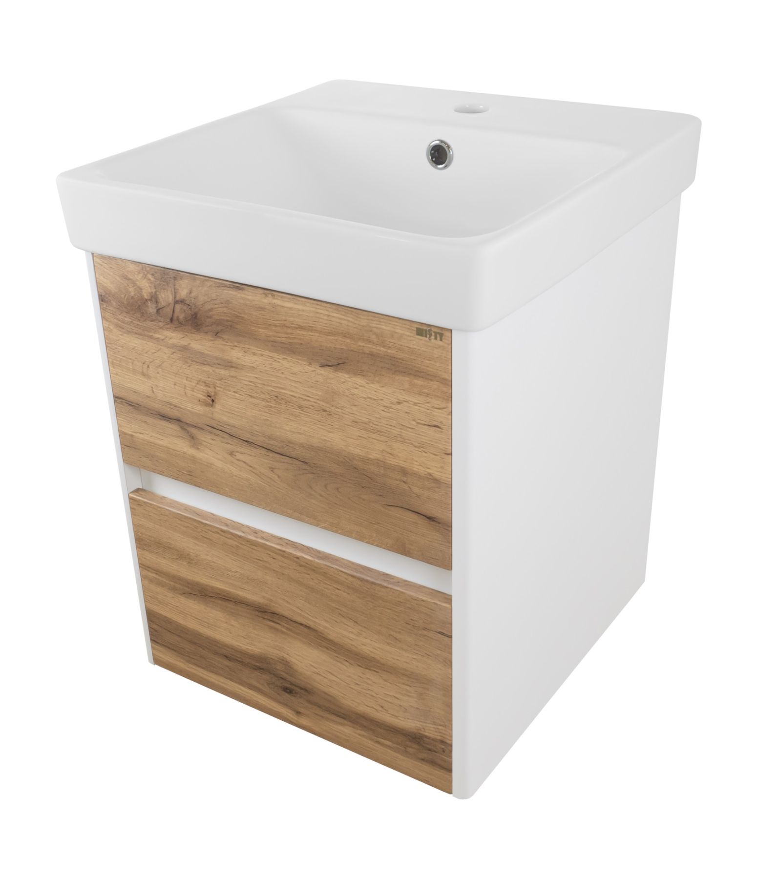 Подвесная тумба под раковину Misty Адриана 45см дуб Вотан/белый купить