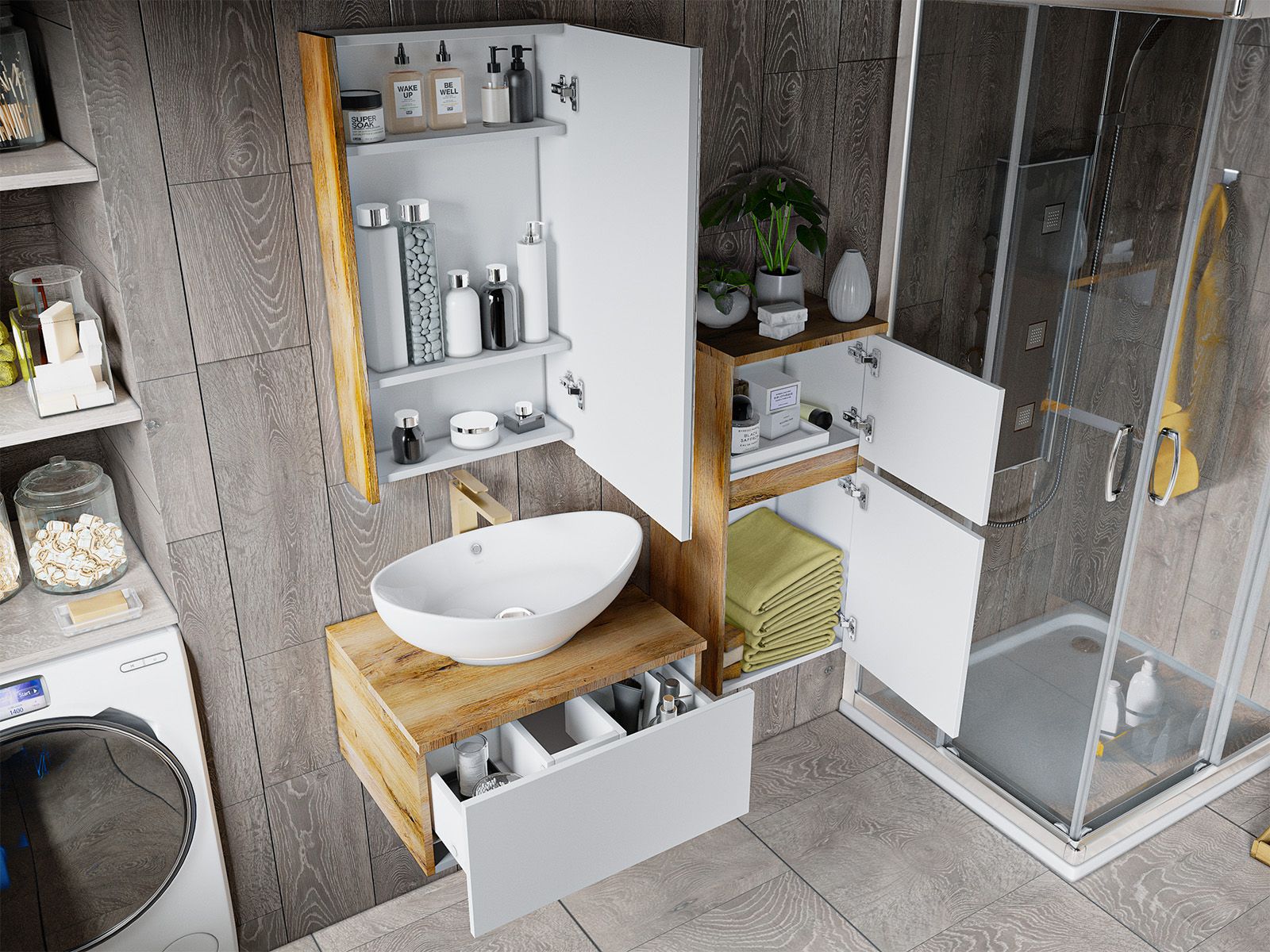 Подвесная тумба в ванную комнату – это не просто элемент мебели, а подлинный акцент в интерьере, который сочетает в себе функциональность и стиль. Она придаёт помещению лёгкость и воздушность, освобождая пространство на полу и создавая иллюзию большего объёма.Функциональные особенности таких тумб варьируются от наличия выдвижных ящиков до встроенных систем хранения, которые помогают организовать пространство ванной комнаты. Важным аспектом является также возможность выбора различных цветовых решений и отделок, что позволяет гармонично вписать тумбу в любой интерьер – от классического до ультрасовременного.С помощью подвесной тумбы ванная комната становится не только более удобной, но и эстетически привлекательной, создавая атмосферу уюта и роскоши.