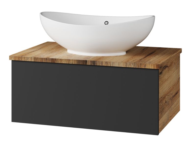 Подвесная тумба под раковину Misty Ива 70см графит/дуб Вотан купить