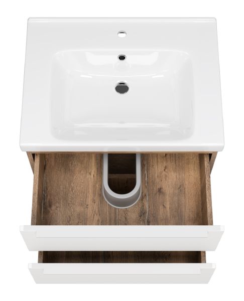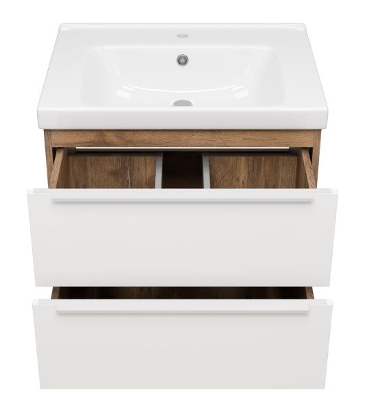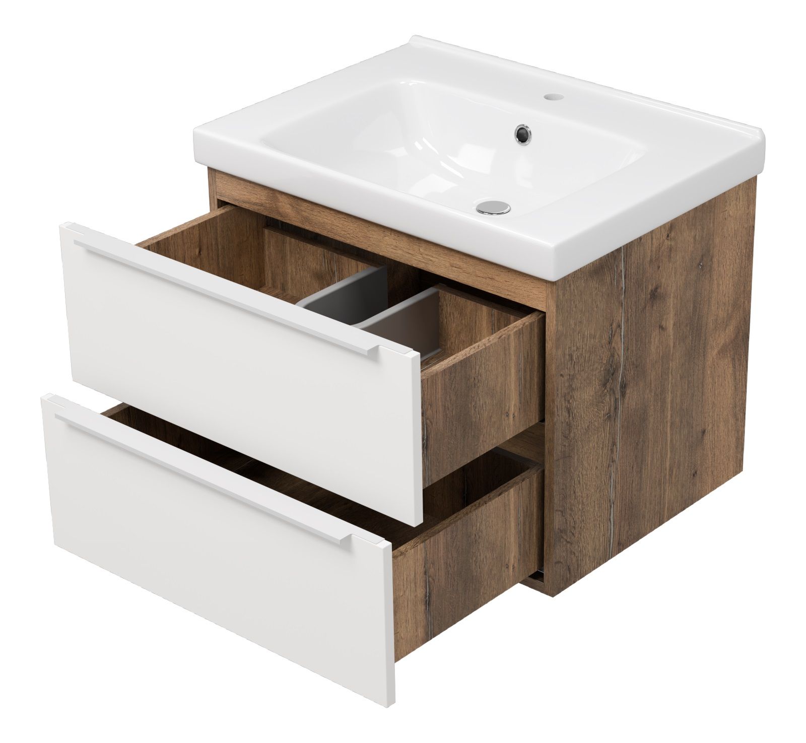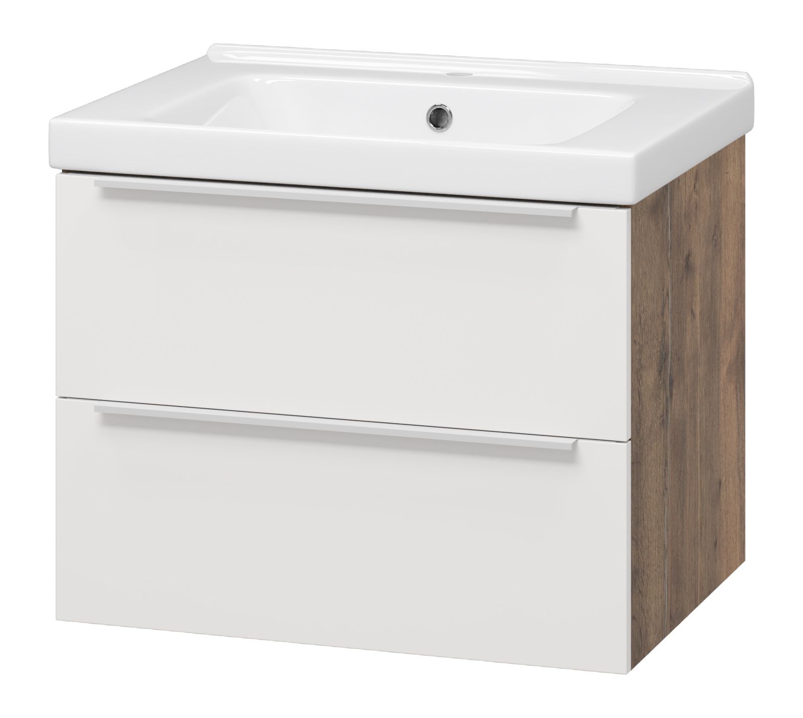 Подвесная тумба под раковину Misty Карат 65см белый/дуб Галифакс олово купить