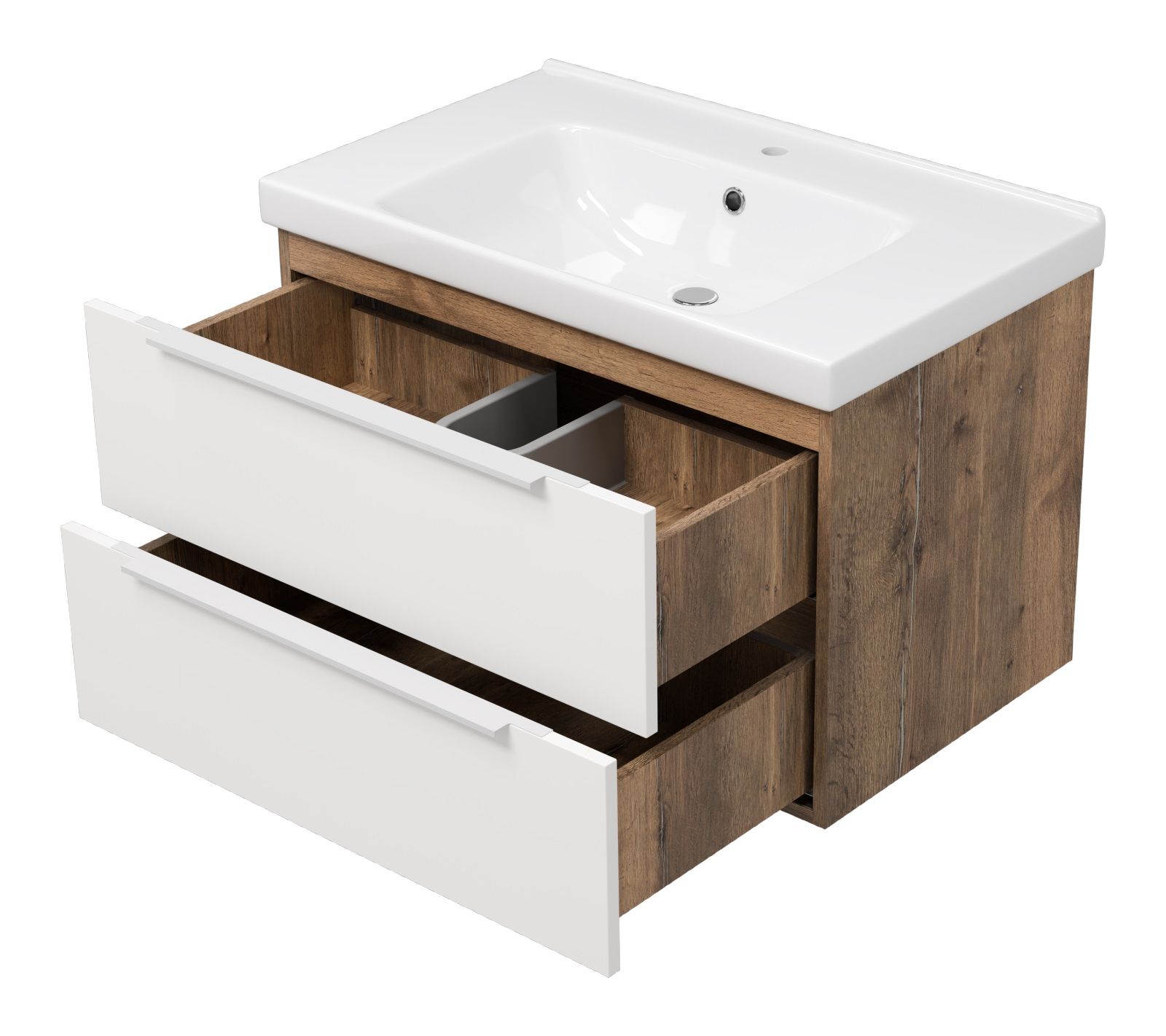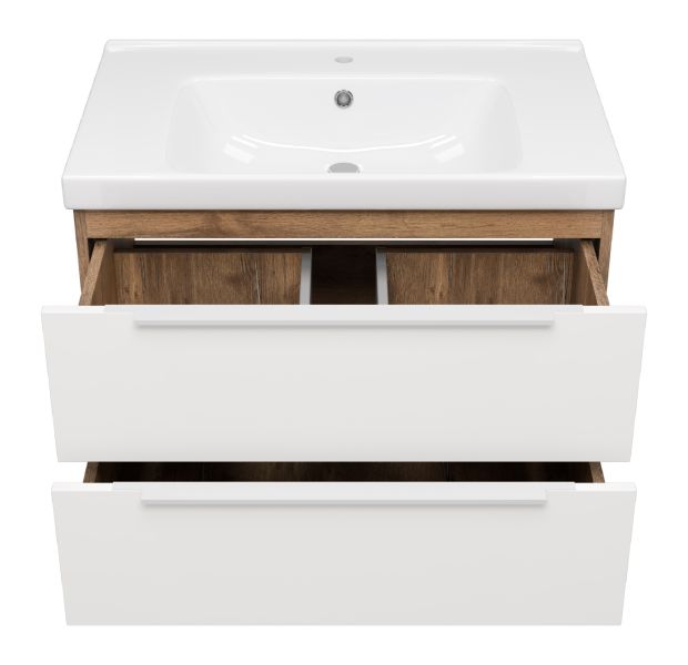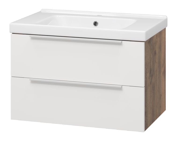Подвесная тумба под раковину Misty Карат 80см белый/дуб Галифакс олово купить