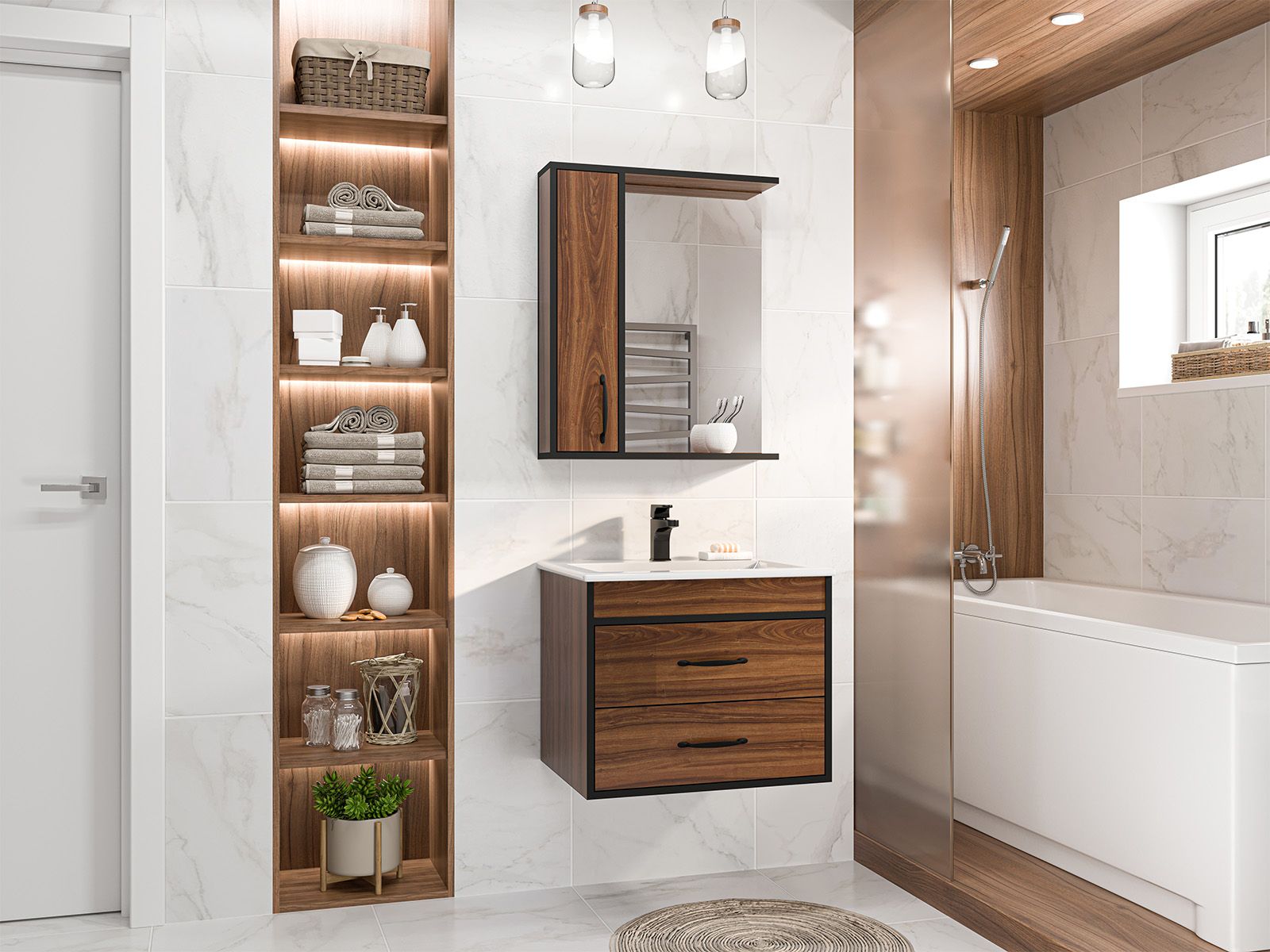 Подвесная тумба в ванную комнату – это не просто элемент мебели, а подлинный акцент в интерьере, который сочетает в себе функциональность и стиль. Она придаёт помещению лёгкость и воздушность, освобождая пространство на полу и создавая иллюзию большего объёма.Функциональные особенности таких тумб варьируются от наличия выдвижных ящиков до встроенных систем хранения, которые помогают организовать пространство ванной комнаты. Важным аспектом является также возможность выбора различных цветовых решений и отделок, что позволяет гармонично вписать тумбу в любой интерьер – от классического до ультрасовременного.С помощью подвесной тумбы ванная комната становится не только более удобной, но и эстетически привлекательной, создавая атмосферу уюта и роскоши.