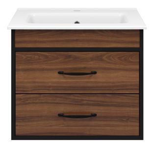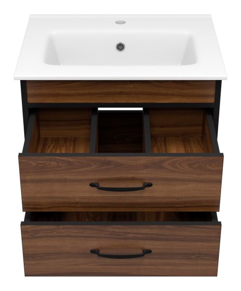Подвесная тумба под раковину Misty Кедр 60см чёрный/орех купить