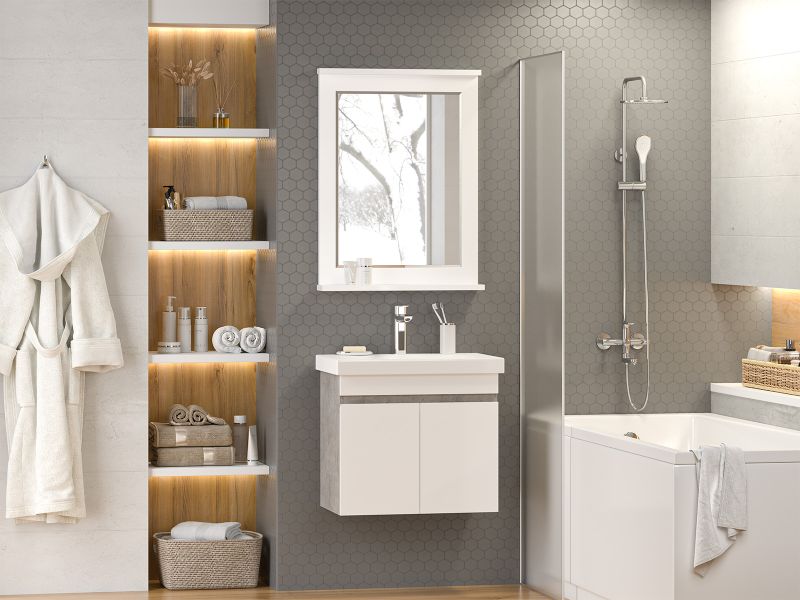 Подвесная тумба под раковину Misty Ронда 60см белый/бетон Чикаго светло-серый купить