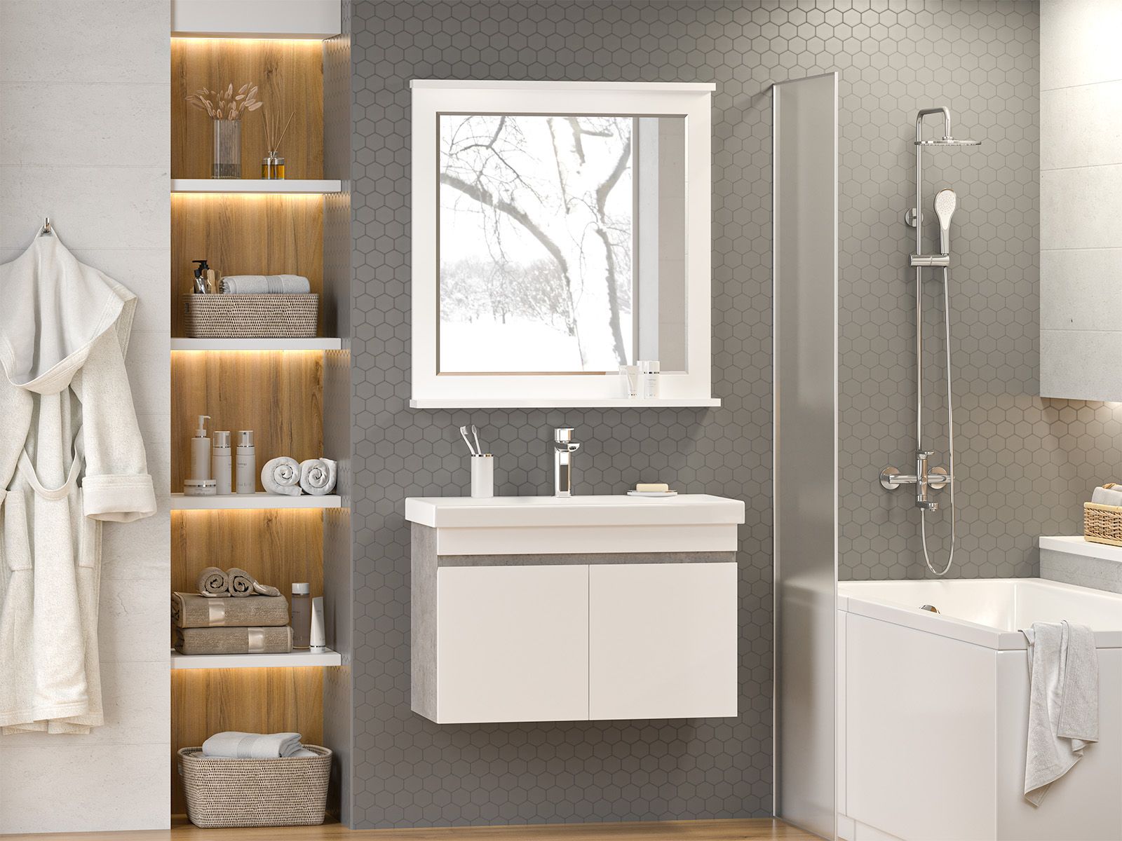 Подвесная тумба в ванную комнату – это не просто элемент мебели, а подлинный акцент в интерьере, который сочетает в себе функциональность и стиль. Она придаёт помещению лёгкость и воздушность, освобождая пространство на полу и создавая иллюзию большего объёма.Функциональные особенности таких тумб варьируются от наличия выдвижных ящиков до встроенных систем хранения, которые помогают организовать пространство ванной комнаты. Важным аспектом является также возможность выбора различных цветовых решений и отделок, что позволяет гармонично вписать тумбу в любой интерьер – от классического до ультрасовременного.С помощью подвесной тумбы ванная комната становится не только более удобной, но и эстетически привлекательной, создавая атмосферу уюта и роскоши.
