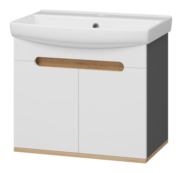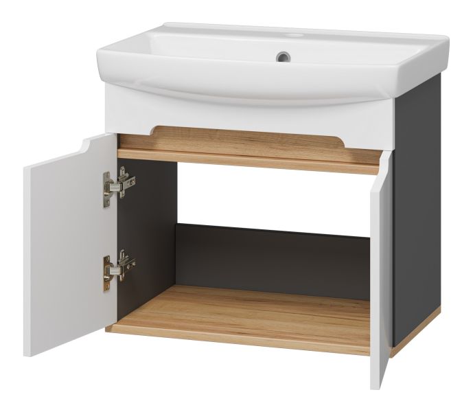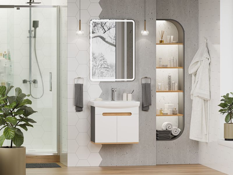 Подвесная тумба под раковину Misty Сканди 60см белый/дуб крафт золотой/антрацит купить