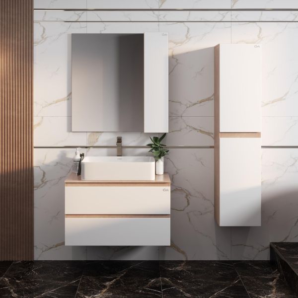 Подвесная тумба под раковину Onika Алеста 108054 80см белый/светлый камень купить