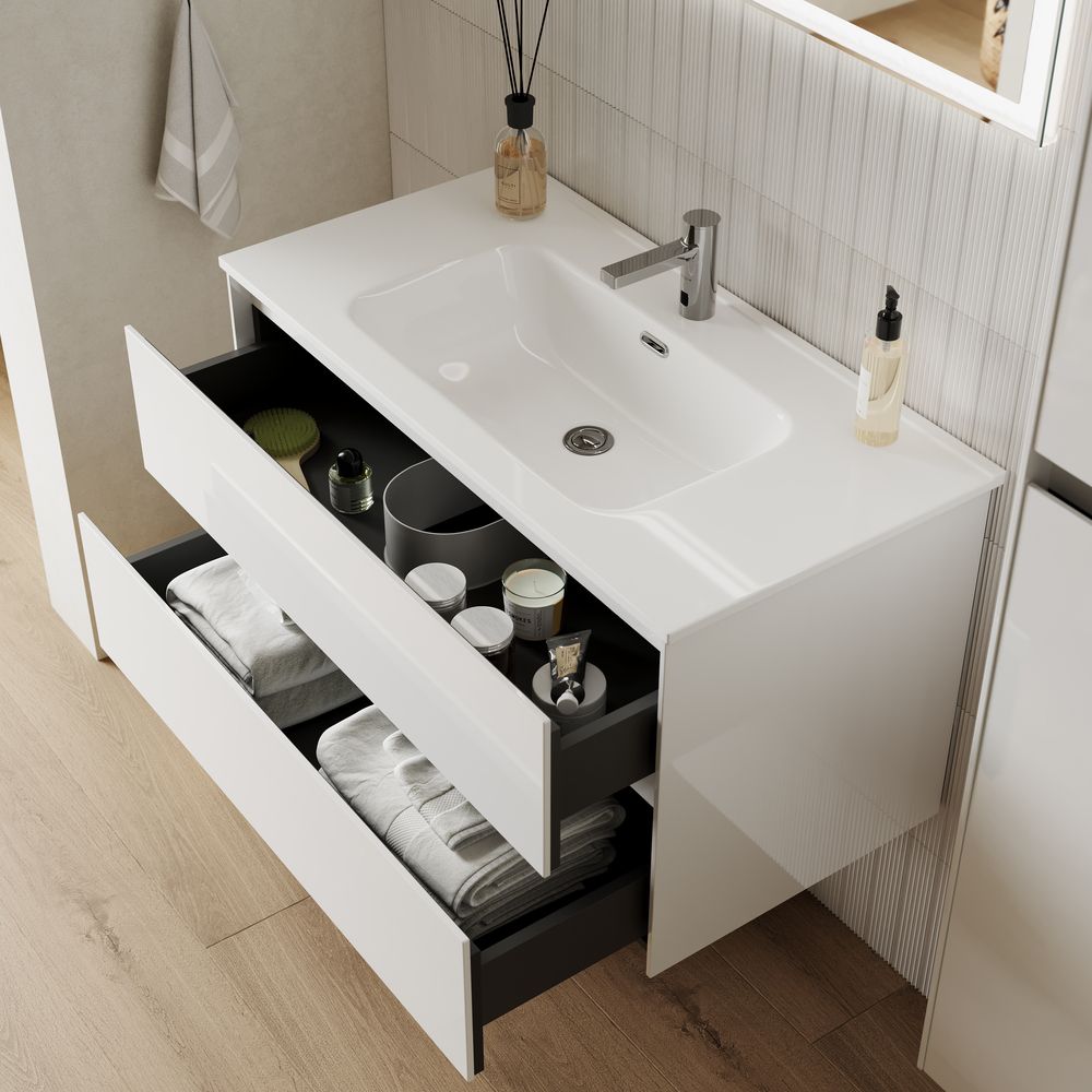 Подвесная тумба под раковину Sancos Cento CN90W 90см белый глянец купить