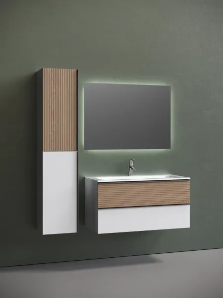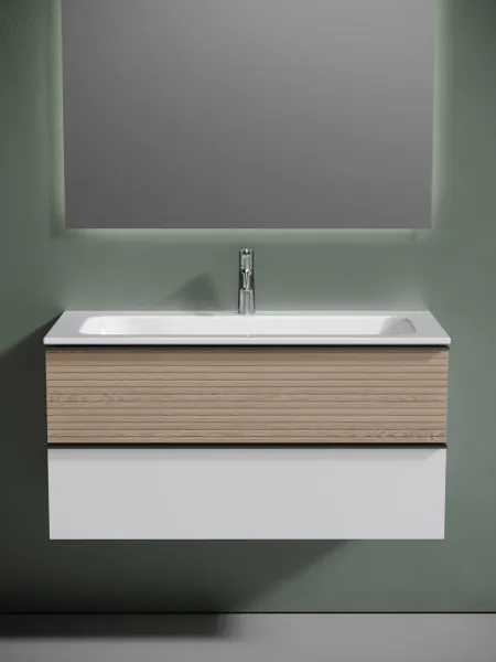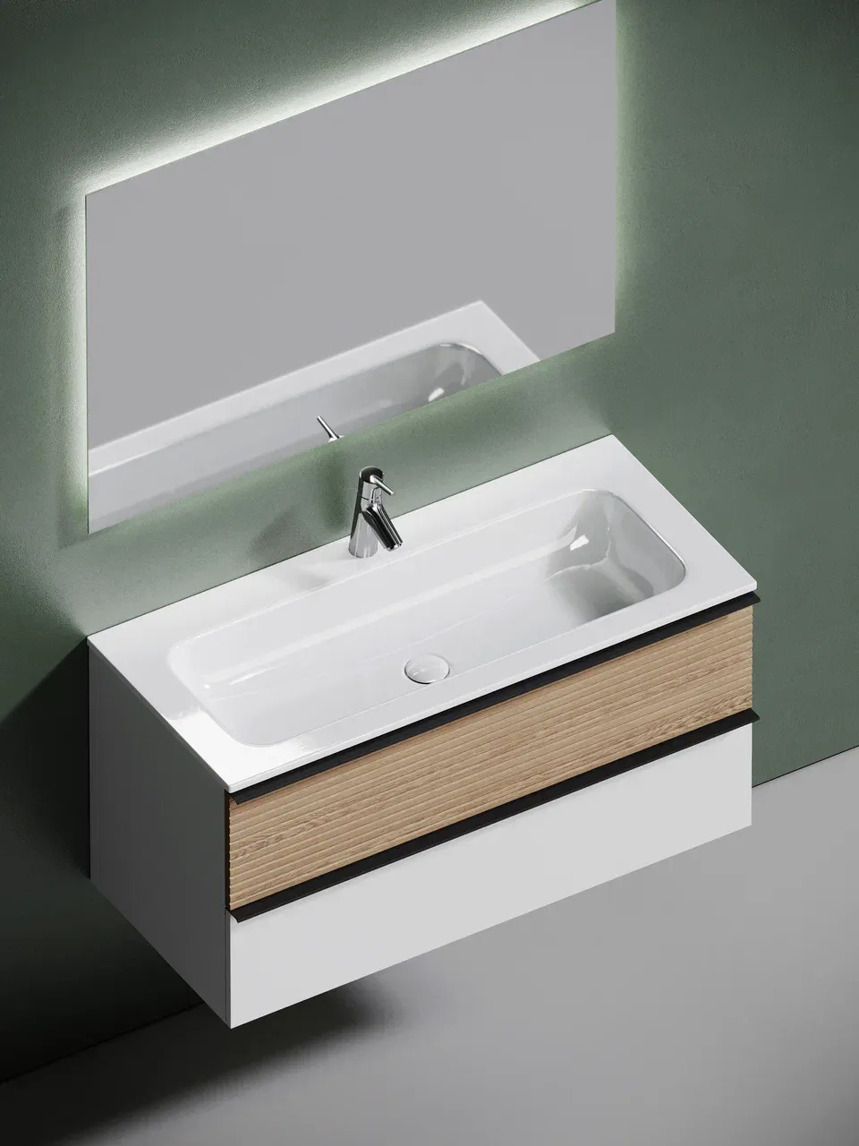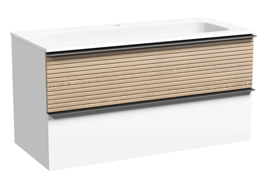 Подвесная тумба под раковину Sancos Delta DL100W 100см дуб светлый/белый купить