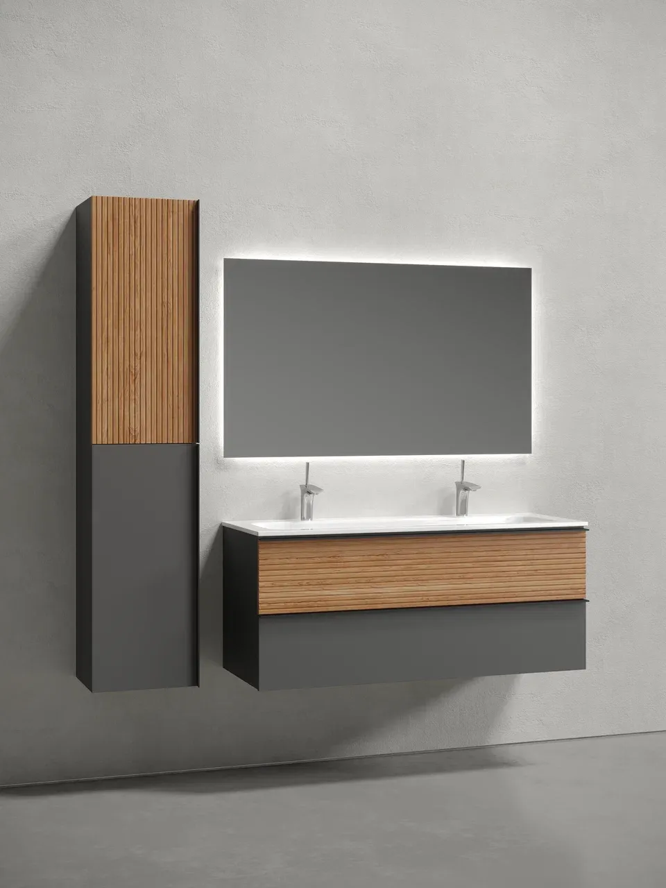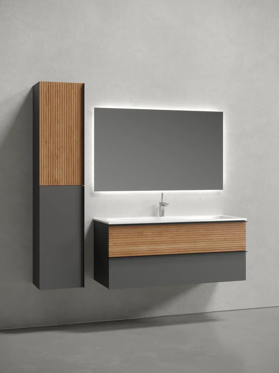 Подвесная тумба под раковину Sancos Delta DL120GR 120см дуб красный/графит купить
