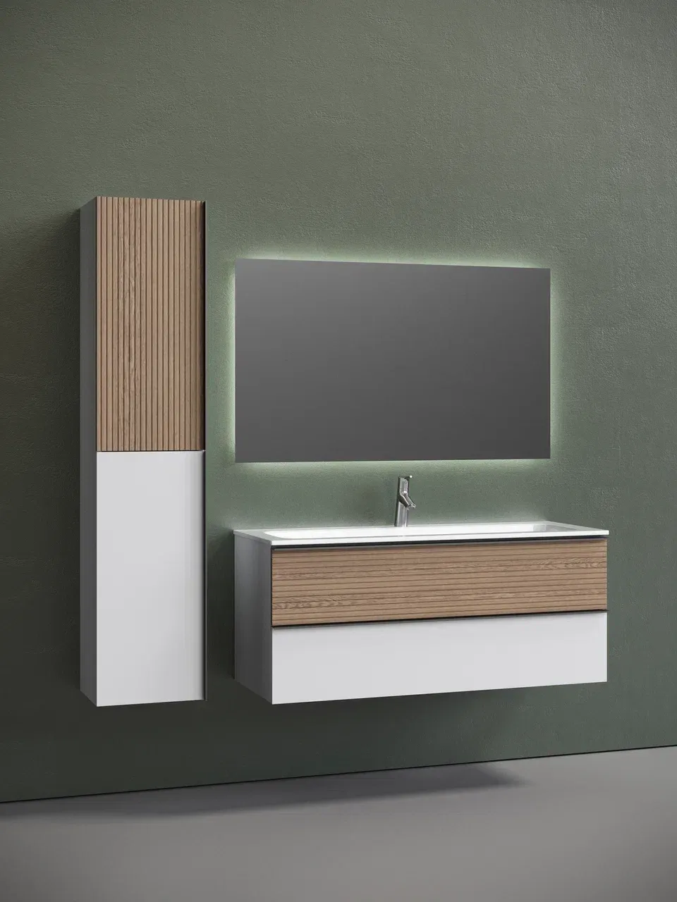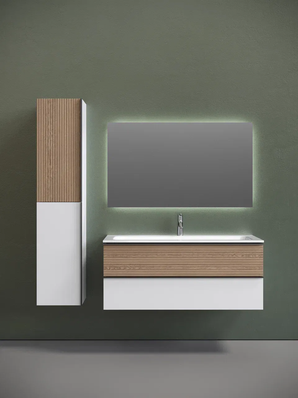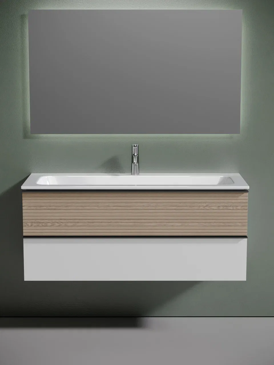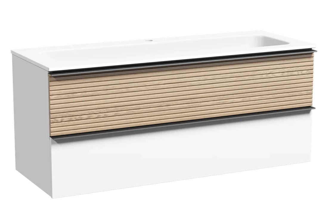Подвесная тумба под раковину Sancos Delta DL120W 120см дуб светлый/белый купить