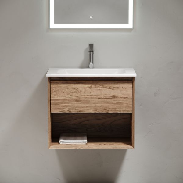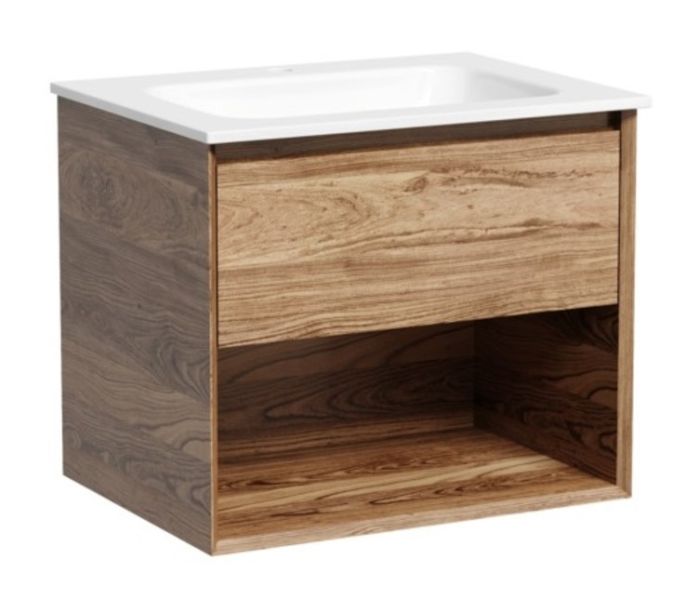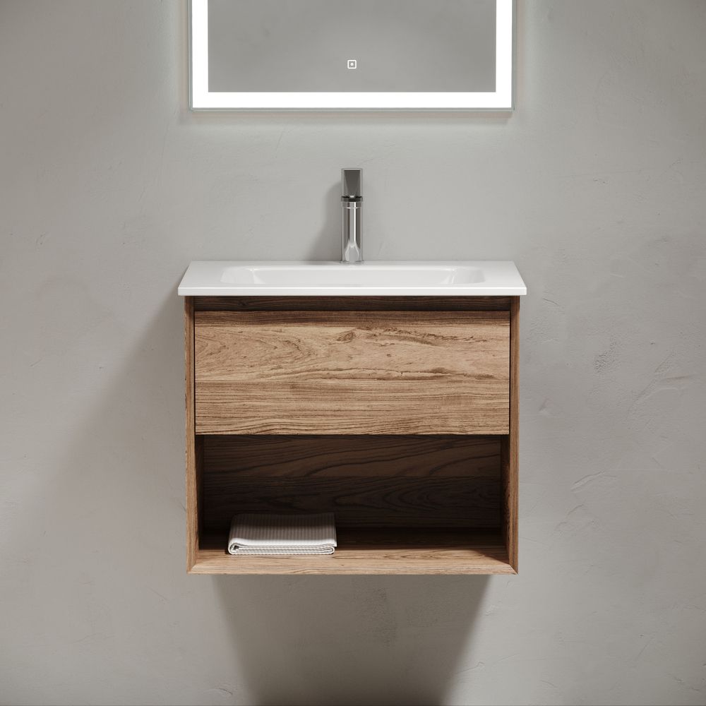 Тумба подвесная SANCOS Marmi 1.0 590х445х520 c одним ящиком оснащенным доводчиками скрытого монтажа с системой Soft close (плавного закрывания) и открытой нишей, c фрезерованной ручкой по всей длине фасада, дуб чарльстон, арт.MR1.060ECH