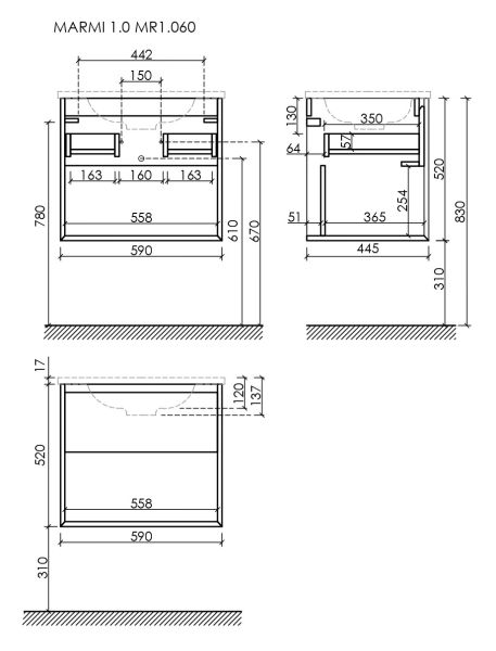 Подвесная тумба под раковину Sancos Marmi 1.0 MR1.060EG 59см дуб галифакс натуральный купить