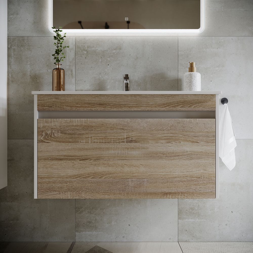 Подвесная тумба под раковину Sancos Smart SM90E 90см дуб бардолино/белый купить