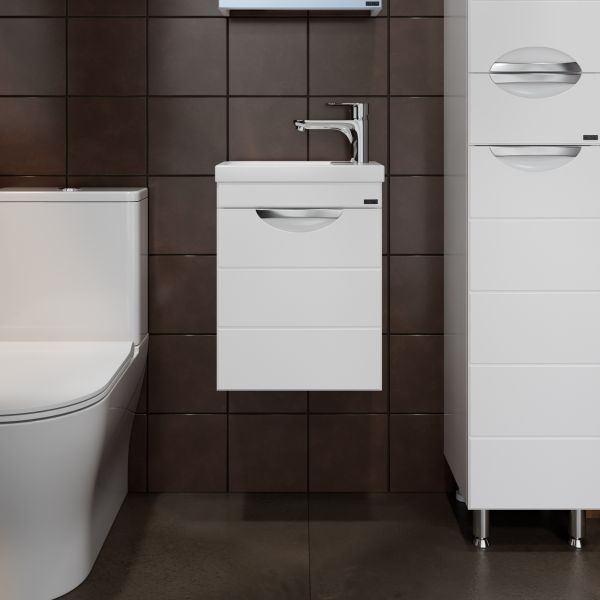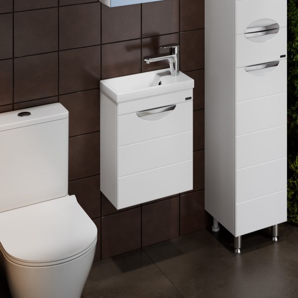 Тумба подвесная Санта Родос 40 под умывальник Como 40 — это воплощение современного и стильного дизайна, созданное специально для вашей ванной комнаты. Она имеет одну дверцу, что обеспечивает лёгкий доступ к её содержимому. Фасад тумбы выполнены из МДФ с фрезеровкой и покрыт глянцевой ПВХ-пленкой, а боковины — из белого влагостойкого ЛДСП.