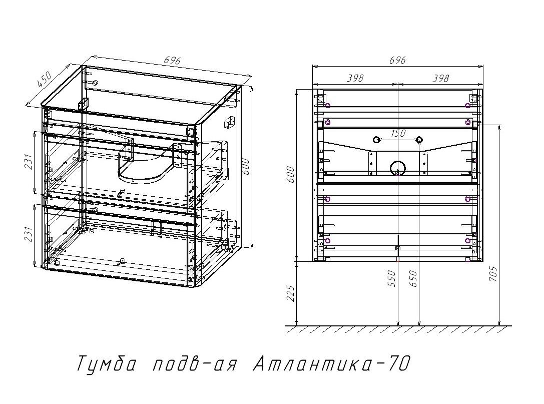 Тумба под раковину Style Line Атлантика 70, СС-00002340, 70 см, подвесная, Люкс Plus, старое деревоРаковина приобретается отдельно.