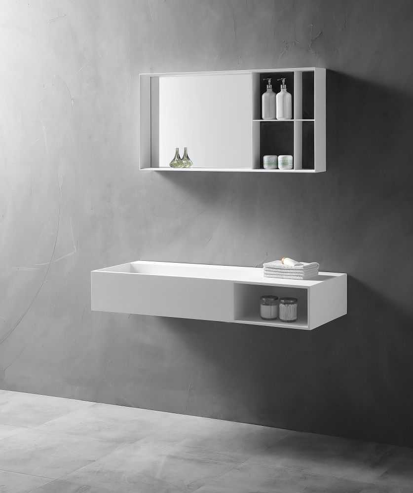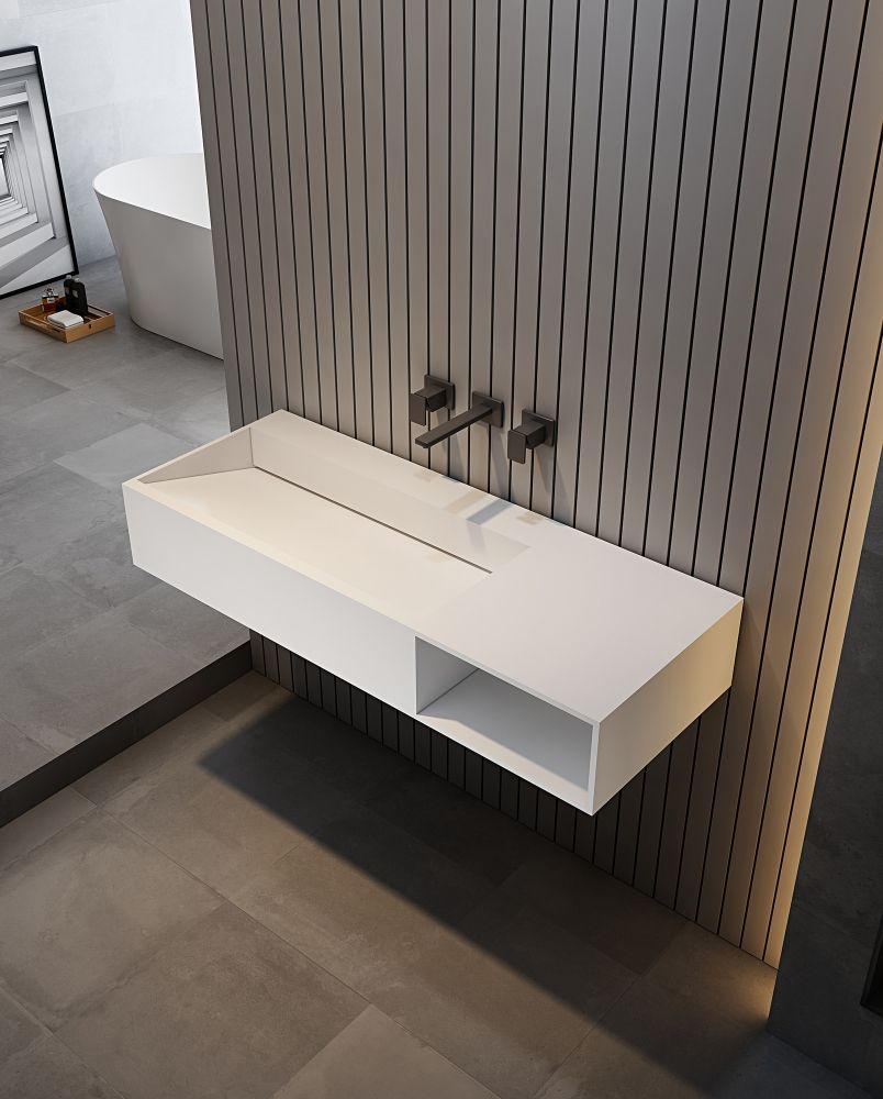 Подвесная тумба с раковиной ABBER Stein-1.0 R правая 100см белый матовый купить