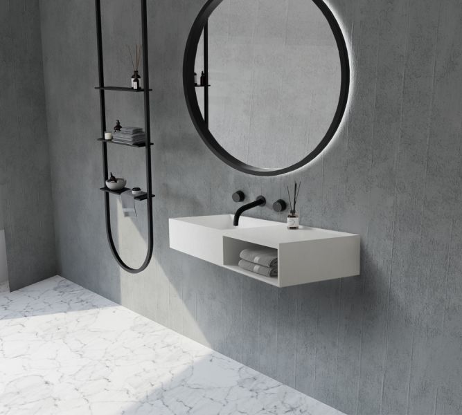 Подвесная тумба с раковиной ABBER Stein AS2649-1.2 120см белый матовый купить