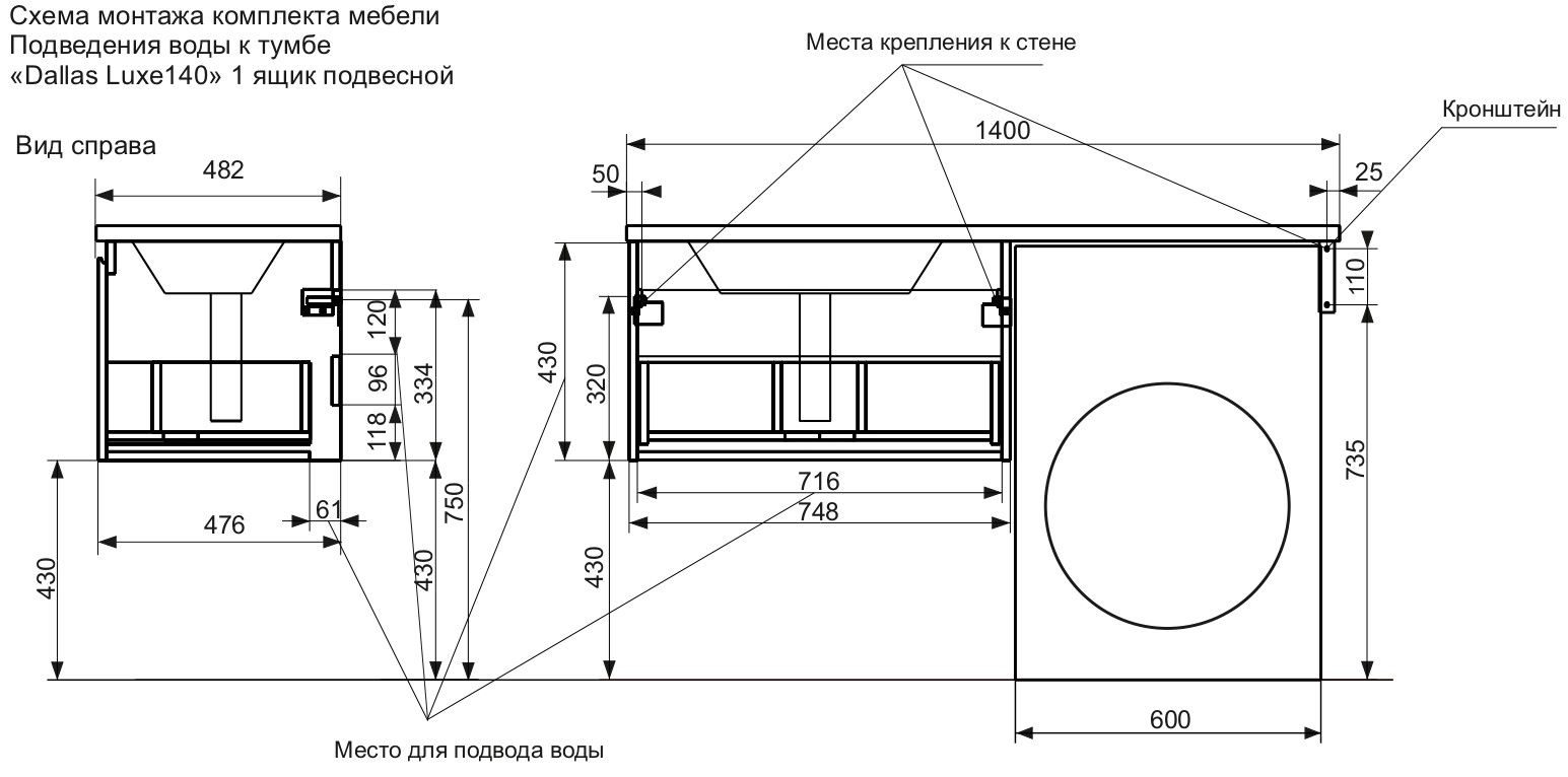 Подвесная тумба с раковиной Эстет Dallas Luxe ФР-00002925 П 140см длинный ящик белый купить