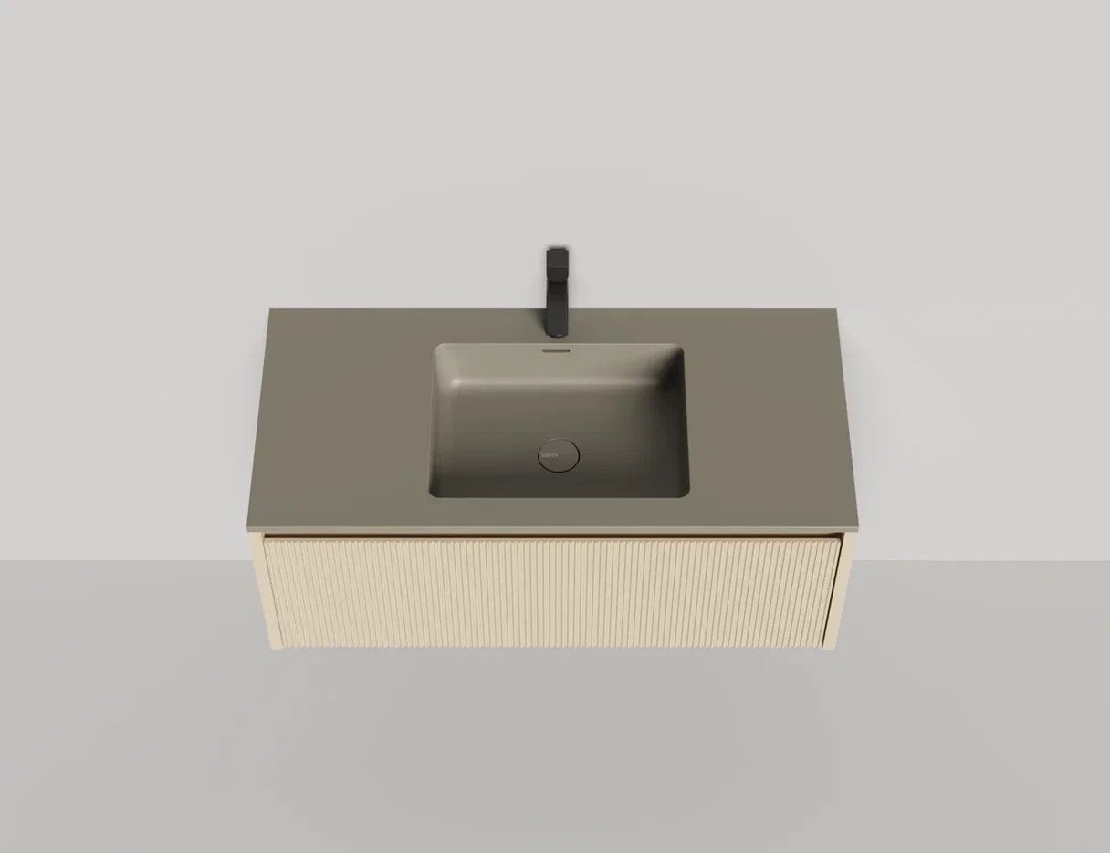 - Тумба и столешница из материала S-Stone в сборе (накладные раковины укомплектованы донным клапаном и поставляются в отдельной коробке)