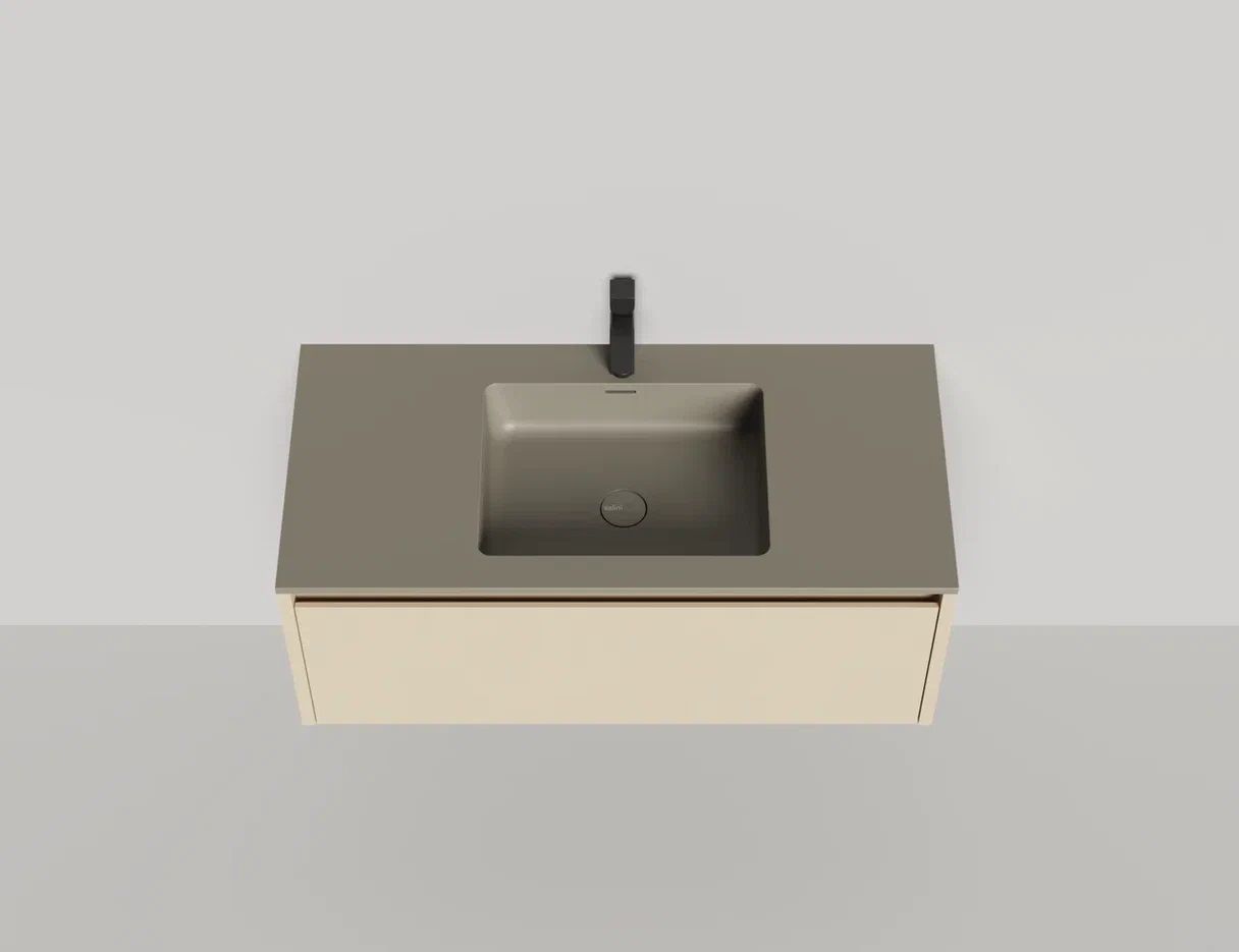 - Тумба и столешница из материала S-Stone в сборе (накладные раковины укомплектованы донным клапаном и поставляются в отдельной коробке)